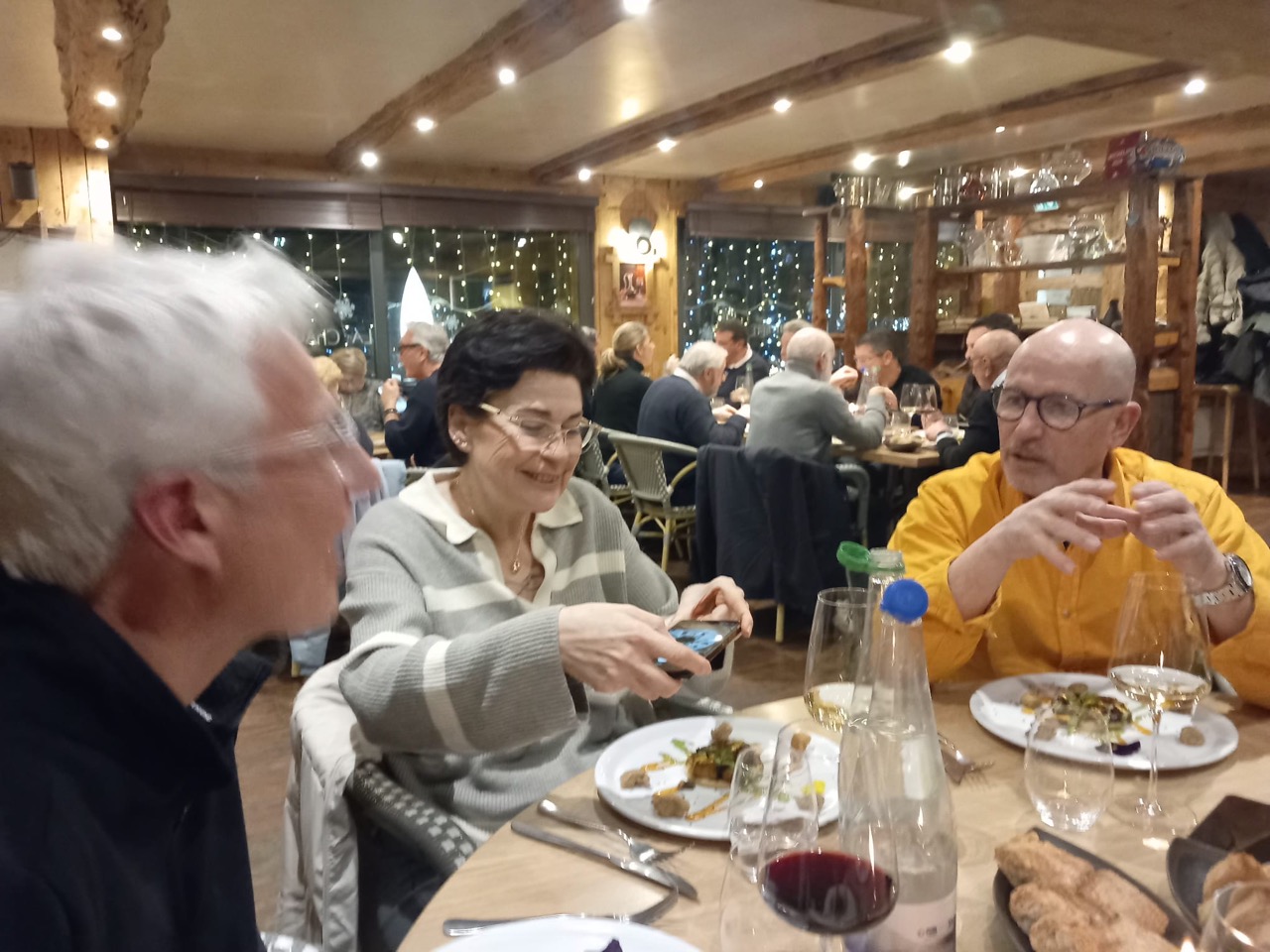 L’événement a débuté le dimanche avec la possibilité de skier dès le matin pour les plus matinaux, grâce à la remise des forfaits au Bistrot de la Calme. Le déjeuner, libre et convivial, a permis aux invités de se retrouver avant le dîner d’ouverture à La Chaumière, où apéritif et repas ont lancé officiellement la rencontre.